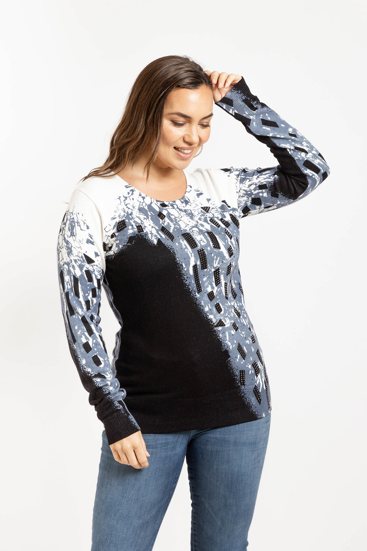 Descripción: Sweater con estampa y accesorios de piedras. Composición 80% viscosa y 20% nylon.