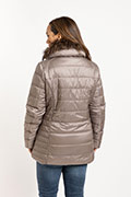 Parka larga en tela tornasolada matelaseada. Interior estampado.