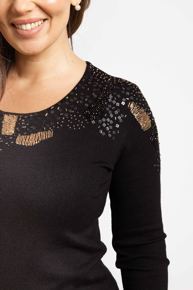 Descripción: Sweater con accesorios de piedra. Composición 80% viscosa y 20% nylon.